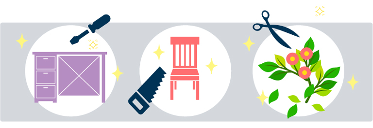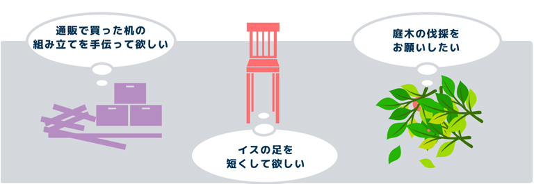 サービス内容:インテリア情報の提供。[総合手配アシスト]大工・庭仕事代行サービスの手配の提供。